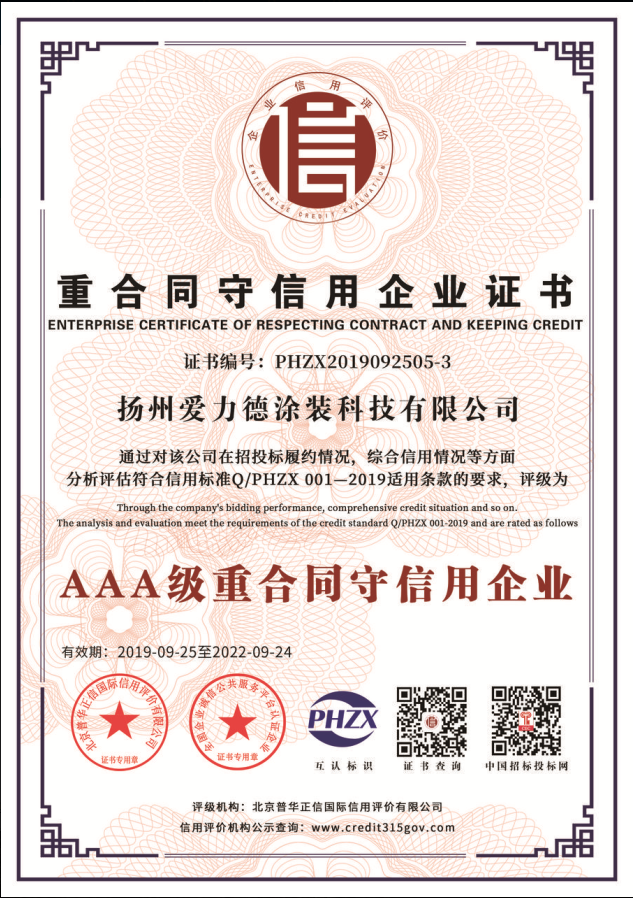 重合同守信用企業(yè)證書(shū)